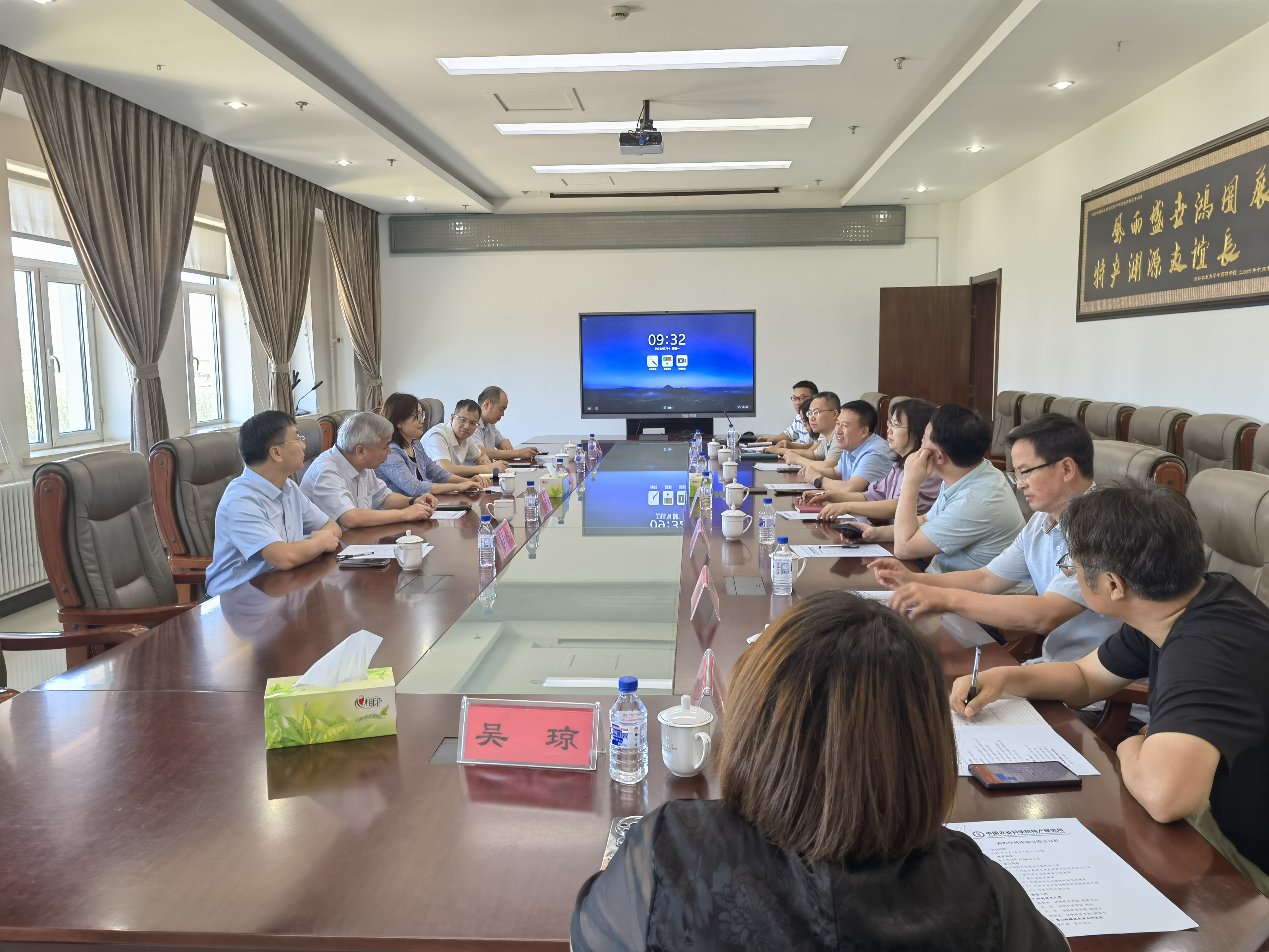 刘志杰向学院领导一行的到访表示欢迎,他回顾了双方前期的合作历程和取得的成效。张利冰简要介绍了学校的基本情况,及与中国农科院融合发展所取得的进展,期望双方以此为平台,加强交流,充分发挥各自优势,实现资源共享、平台共建、人才共育,在更深层次、更广领域深化合作。李明介绍了中国现代农业联合研究生院研究生联合招生培养、与中国农科院相关研究所联合申报重大项目、共建重大平台等推进进展落实等情况。张铁涛详细介绍了中国农科院特产研究所在科技创新、成果转化、团队建设等方面开展的主要工作与成效。李转见介绍了学院近年来在科学研究、学科建设、团队发展、党建与思政及人才培养等方面的做法及取得的成绩。