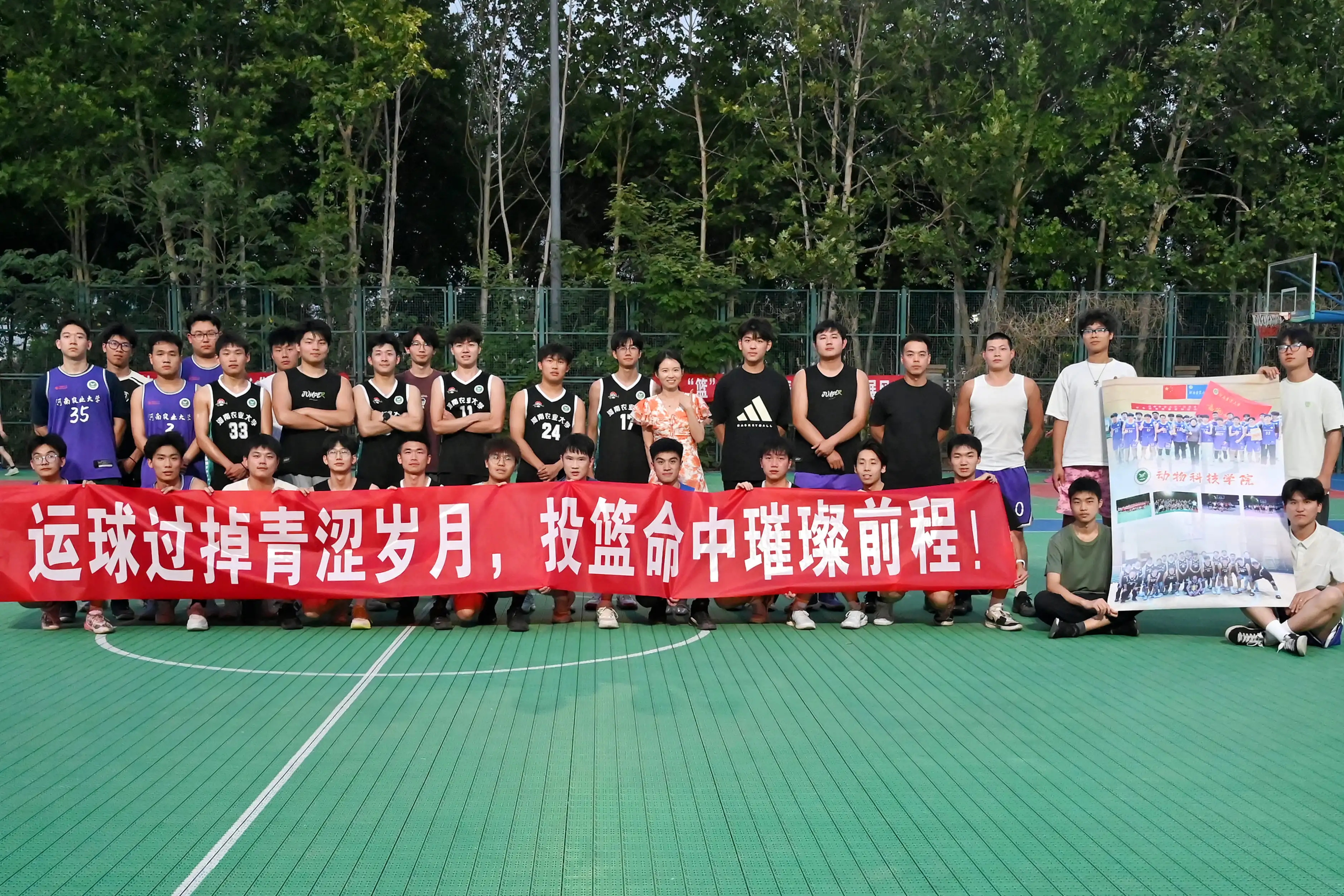 经过五天的激烈角逐,篮球比赛圆满落幕,学院为获胜的队伍精心准备篮球袜作为奖品。参赛球员合影留念,这不仅是对球员们赛场表现的认可,更是一份珍贵的纪念。