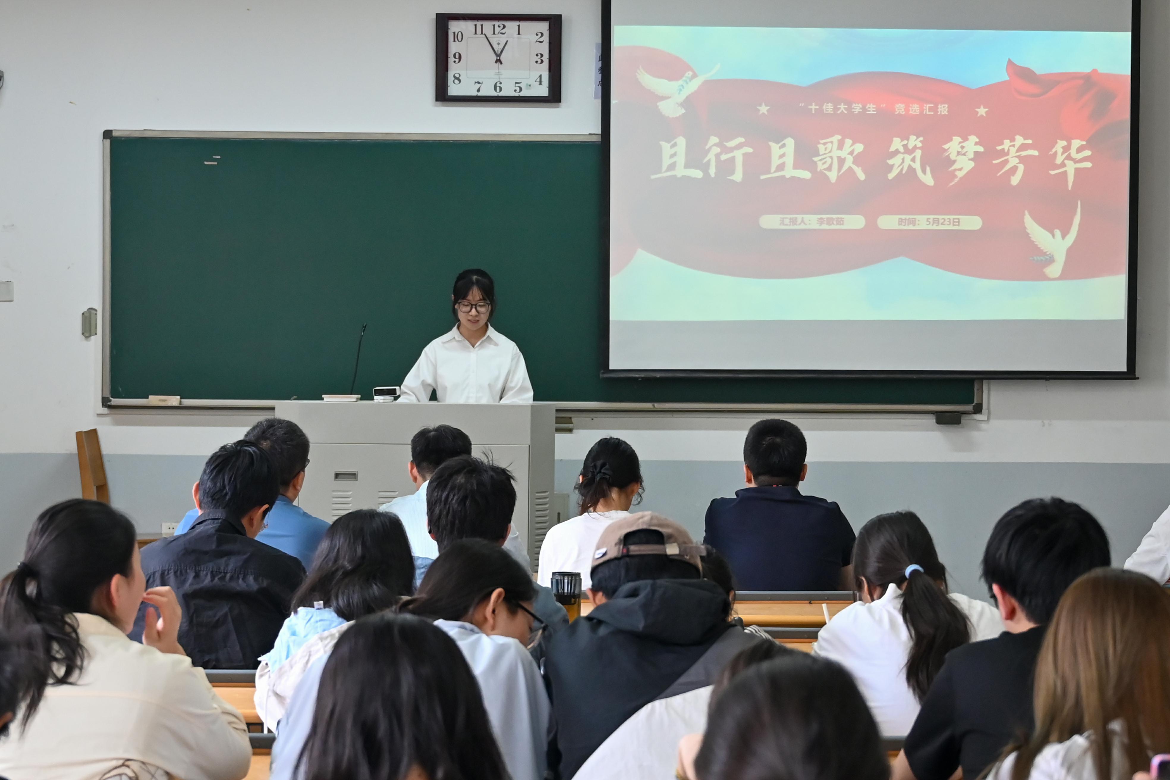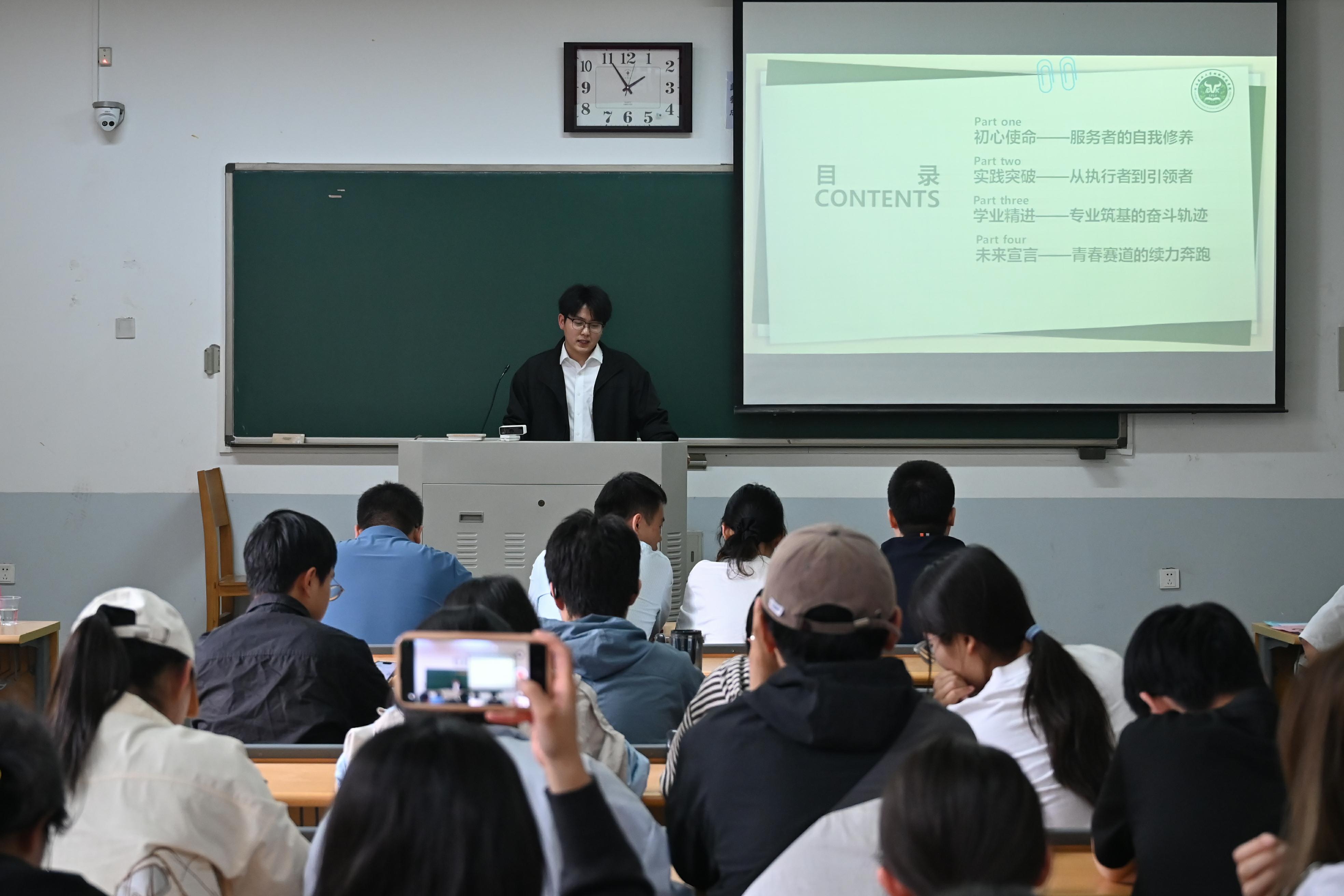 于龙子湖校区繁塔楼D207教室举办第一届“十佳大学生”评选活动。院辅导员赵姝灿、杨超然、郭明,兼职辅导员王伟、苏宁宁以及各班学生代表参会。会议由学生代表朱柯旺主持。