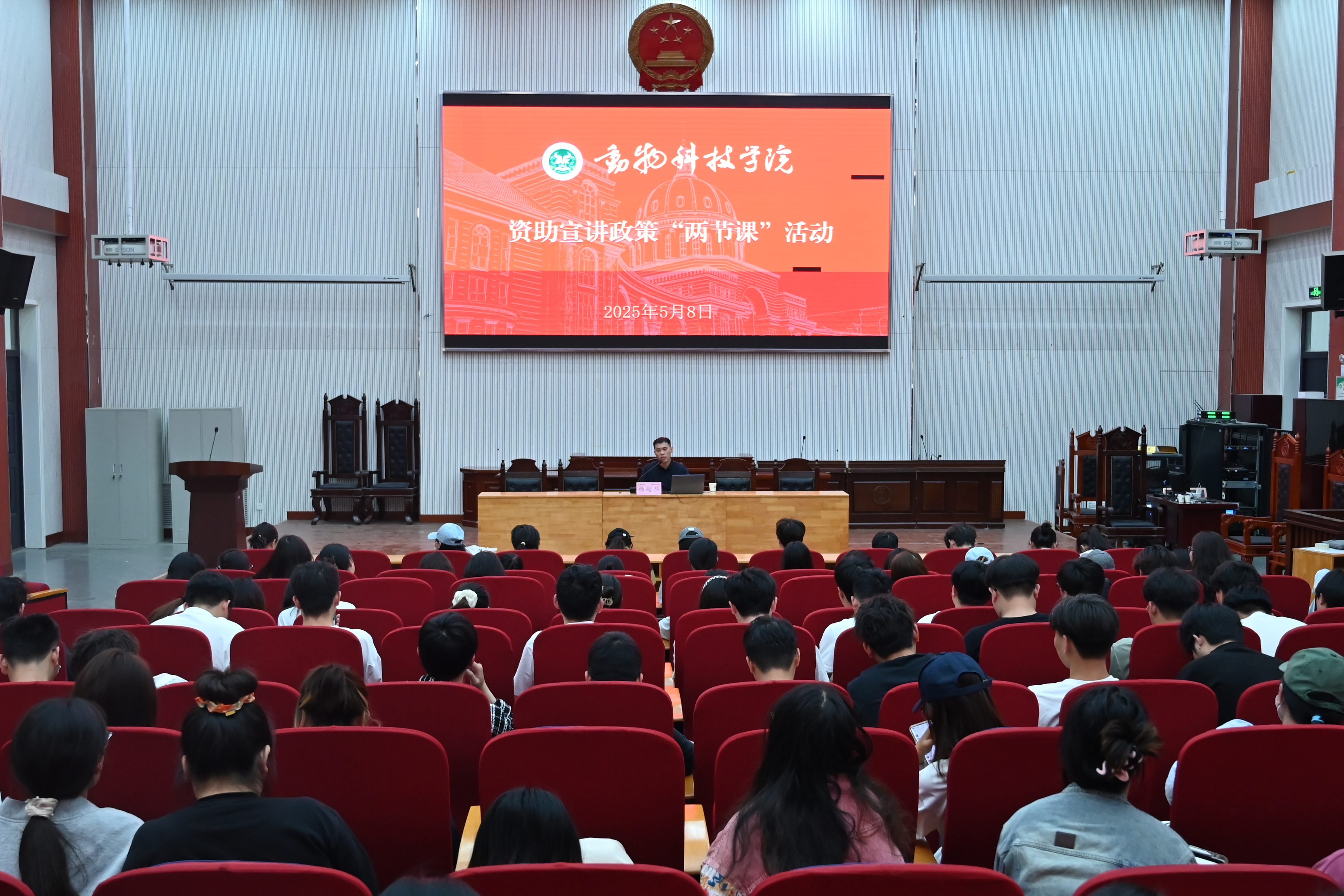 于龙子湖校区繁塔楼大教室三举办2025届毕业生资助政策宣讲“两节课”活动,院党委副书记郭娟、副院长李转见、院组织员兼团委书记韩笑,辅导员赵姝灿、杨超然出席活动,2025届全体毕业生参加活动。