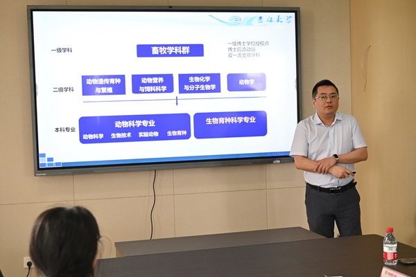 袁宝从学科发展情况为切入点,全方位介绍了吉林大学动物科学学院的发展现状、研究生招生及人才培养等情况,详细阐述了学院在师资队伍、人才培养、科研方向、平台建设、社会服务情况等方面取得的成就。同时重点解读了2026年招生专业、学科特色以及往年招生录取情况。讲解以学院宣传片结尾,围绕“立院 学科为本”“强院 人才培养”“兴院 创新为翼”三个板块深刻阐释出学院的发展历程与发展理念。