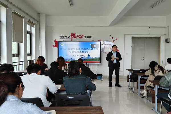 于龙子湖校区桃李园三楼会议室召开春季学期学风建设暨安全稳定工作会议,院辅导员杨超然、各年级班长支书参加会议。