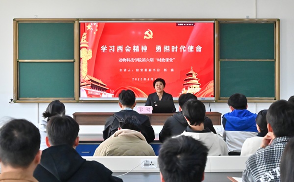 将从提升学科建设质量、深化科教融汇工作、加强有组织科研等方面开展学生工作,促进教育教学和人才培养。最后,郭娟鼓励学生党员积极参加科研项目,投身于实践活动与志愿服务,提升自身综合实力,为成为高素质复合型畜牧人才不懈奋斗。