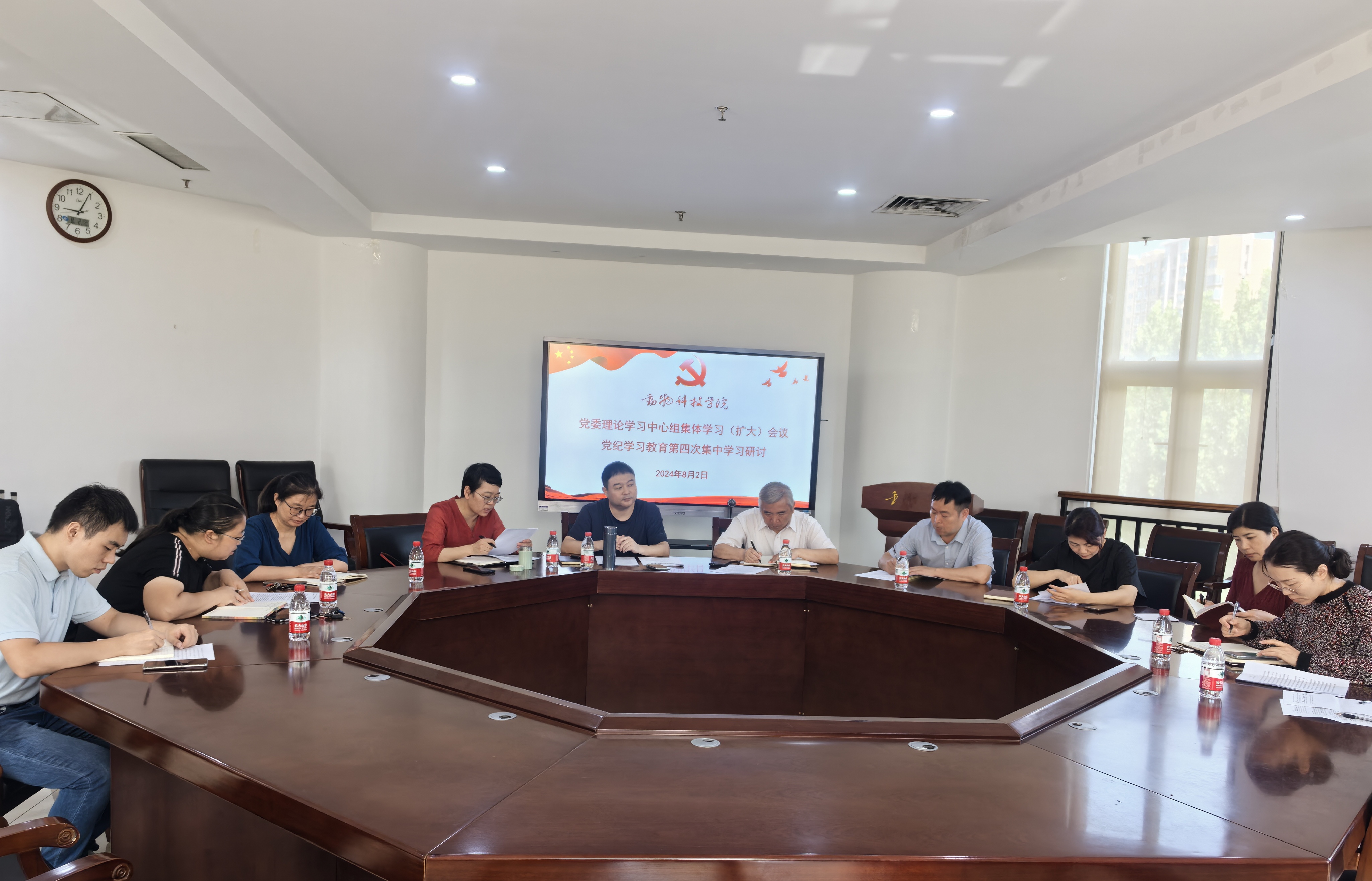 本网讯(通讯员 韩笑)8月2日,学院在第一实验楼北301会议室举行党纪学习教育第四次集中学习研讨暨党委理论学习中心组集体学习(扩大)会议,就巩固拓展党纪学习教育成效,推动党的二十届三中全会精神落地生根进行学习交流。