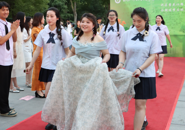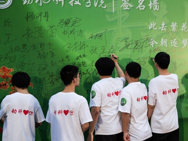 现场分为舞台区、文化区、食品区和游戏区四个版块。主舞台区,毕业生身着盛装踏上红毯、熠熠生辉,也寓意顺着红毯走向未来之门、奋斗之门,进入幸福之门。十余个精心编排的文艺节目,将青春的旋律和回忆的篇章交织成一幅幅动人的画面,串联起韶光忆、南湖情、星河梦三个主题单元,带来专属于动科毕业学子的青春回忆;文化区,毕业生专属纪念币等文创产品承载着浓厚的学院文化和时光印记;签名墙上毕业生浓墨留下对母校最深的眷恋与感恩,文化衫涂鸦区,衬衫上的涂鸦刻下了与动科的特殊羁绊,情寄明信片用最柔软的笔触写下最真诚的祝福;游戏互动区,单眼弹瓶盖等趣味十足,现场互动抽奖环节,共送出豪华行李箱、高档双肩包等礼品50份,助力毕业生逐梦前行;美食区酸奶饮料零食大荟萃,打造一场味蕾盛宴,共襄毕业美好‘食’刻,让欢笑与美味成为难忘的记忆篇章。“仪式感太足了,很骄傲”毕业生蔡钊激动地表示。