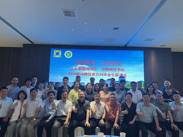 与正大集团河南区联合举办“正值青春,大有作为”动物营养方向研究生毕业联谊会。正大集团河南区资深总裁王停战、开封正大总经理张金生、驻马店正大总经理王向峰、正大集团河南区饲料事业兽医总监苌生科等企业领导,院党委书记余磊等领导班子、动物营养方向导师代表和全体毕业生参加联谊会。联谊会由党委副书记郭娟主持。
