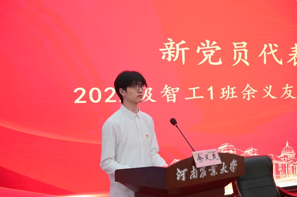 会议在庄严的《国际歌》中拉开帷幕,李明宣读61名新党员名单,郭娟带领新党员进行庄严宣誓。22级智工一班余义友作为新党员代表发言,表示将严格遵守党的纪律,以实际行动践行党员初心和使命;23级饲工二班袁梦迪作为入党积极分子代表发言,表示将在思想、学习、生活中不断对标党员要求,提高自己,涂红青春底色,争取早日加入中国共产党。