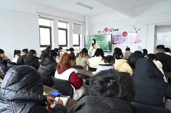 辅导员赵姝灿与兼职辅导员韩易桐出席本次会议,各班班长和团支书参与本次会议。