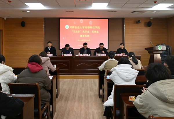 于龙子湖校区第一实验楼南321会议室举行2023年“艾格多”奖学金、奖教金颁奖仪式。河南艾格多科技集团总裁任振东与人资行政总监孙爱平、绅士漫画