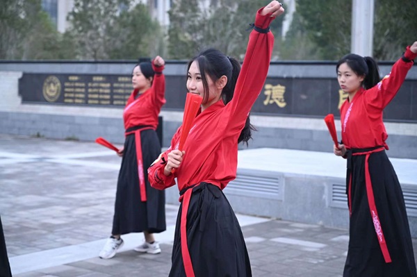 新媒体负责人、21级本科生党员王文桂进行国旗下演讲《好学力行求真知 强国筑梦我担当》。他结合自身实践成长经历论述了“好学力行”的重要性,鼓励大家在常学常新中加强理论修养,在知行合一中主动担当作为,真正做到知学、爱学、好学。随后,由22级索鹏慧、23级冯炳珠等七名同学带来扇子舞《骁》,铿锵有力的节奏、刚柔并济的舞风充分展现出绅士漫画