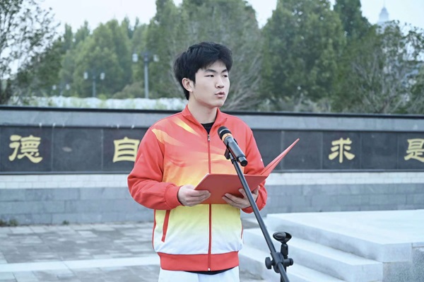 接下来由教师代表王克君教授发表讲话,他提出三点思考与大家共勉,一要热爱伟大祖国,在砥砺奋进中实现人生价值;二要树立远大理想,在勤学笃行中练就过硬本领;三要担当时代使命,在创新实践中历练成长。最后勉励大家珍惜青春时光,丰富知识储备,肩负起青年人的时代重任。
