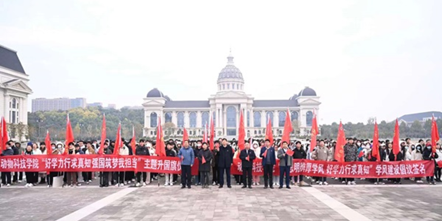 于龙子湖校区举行以“好学力行求真知,强国筑梦我担当”为主题的升旗仪式,学院领导班子及教师代表出席活动,2021级与2022级全体本科生参与升旗仪式,升旗仪式由副院长付彤主持。