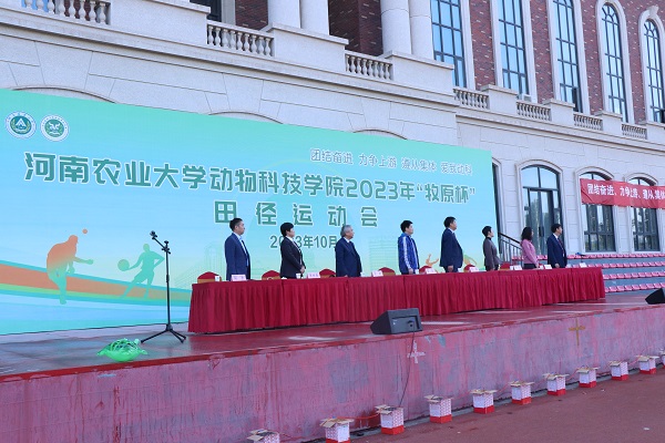 运动员代表马晓龙、总裁判长袁静分别宣誓,党委书记贾磊宣布院运会开幕。伴随彩炮腾空,长达十余米的巨幅五星红旗,在六名运动健儿的托举下,飞奔入场,师生高呼“动科精神”,全场气氛高涨。