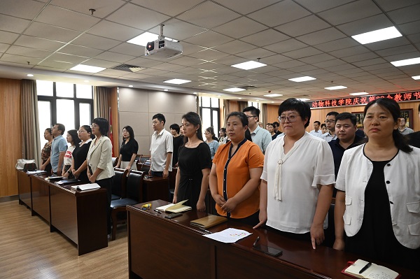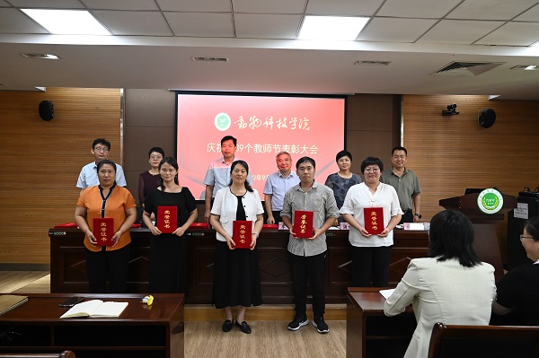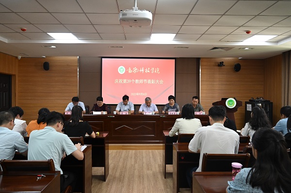 于龙子湖校区实验楼南321会议室隆重举行庆祝第39个教师节表彰大会。学院领导班子和全体教师参加会议,会议由党委副书记郭娟主持。