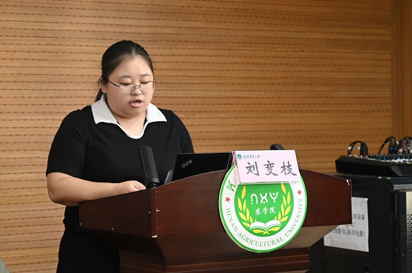 “优秀共产党员”代表刘变枝老师发言,她讲到,教师党员身份光荣,更应以身作则,言行示范,时刻注重发挥先锋模范作用。她倡导大家保持教书育人的追求、科研报国的热忱、勇往直前的勇气、脚踏实地的工作态度,以更大的热情投身教育这一伟大事业。