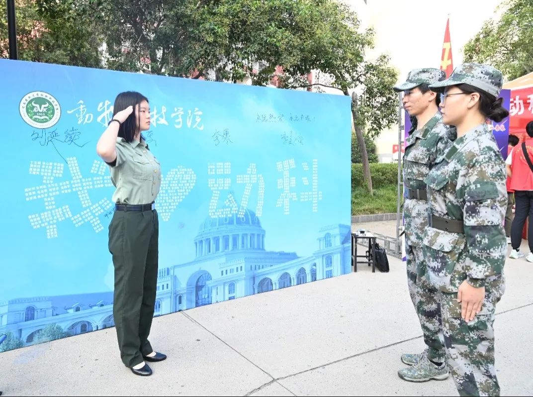 现场有许多珍贵的瞬间:退伍复学学生郎丹歌与铁军志愿者敬礼致意;为报到当天过生日的幸运同学符妍妍合唱生日歌,送上生日蛋糕;隆重欢迎动科第1000位和第1001位学生加入本科生大家庭……学院还暖心地准备了新生大礼包,包含学院致新生的一封信、定制校园卡卡套、清凉小风扇、温度计、明信片等等,还有绅士漫画