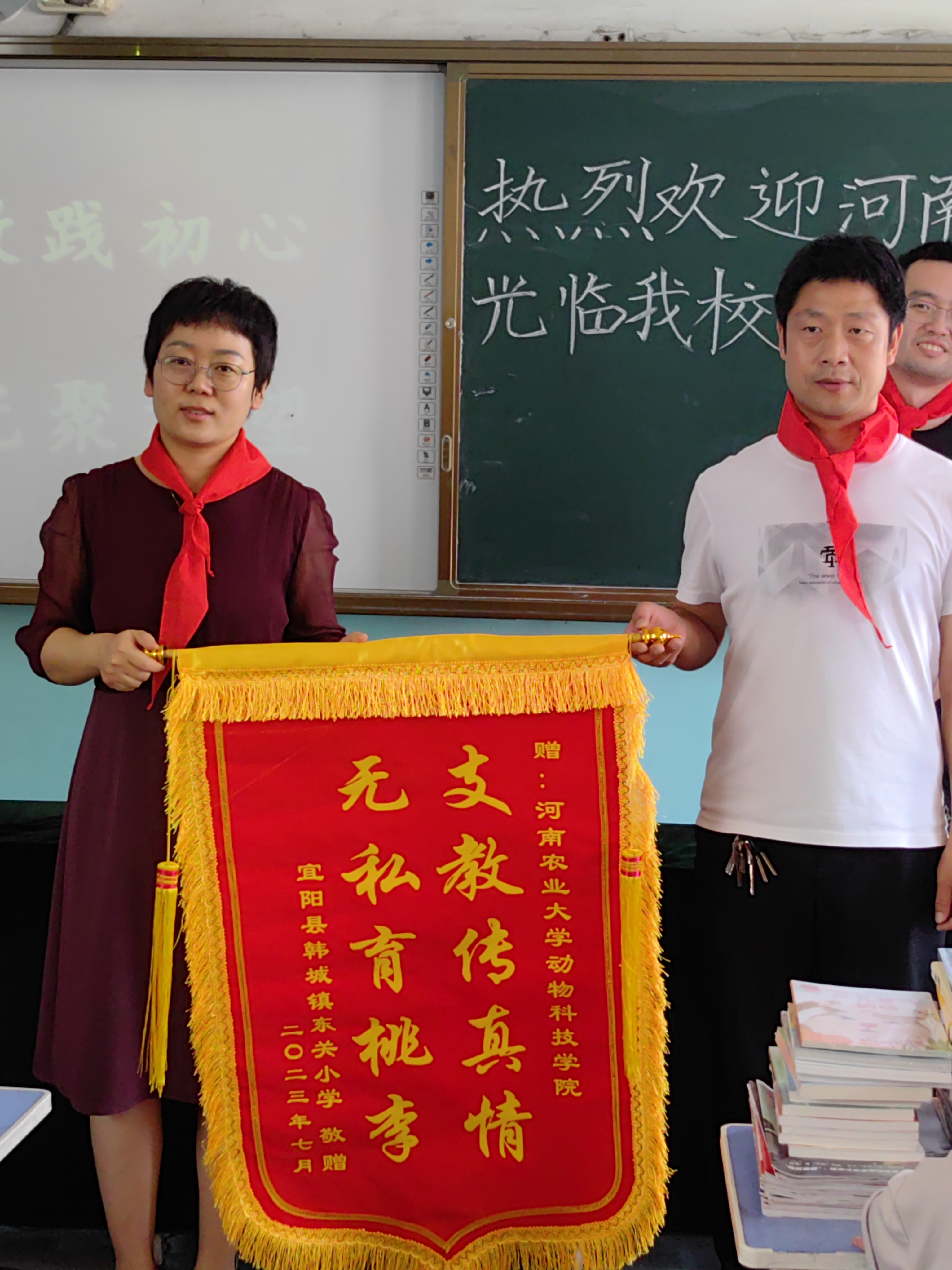 东关小学校长张幸峰向学院赠送锦旗表示感谢