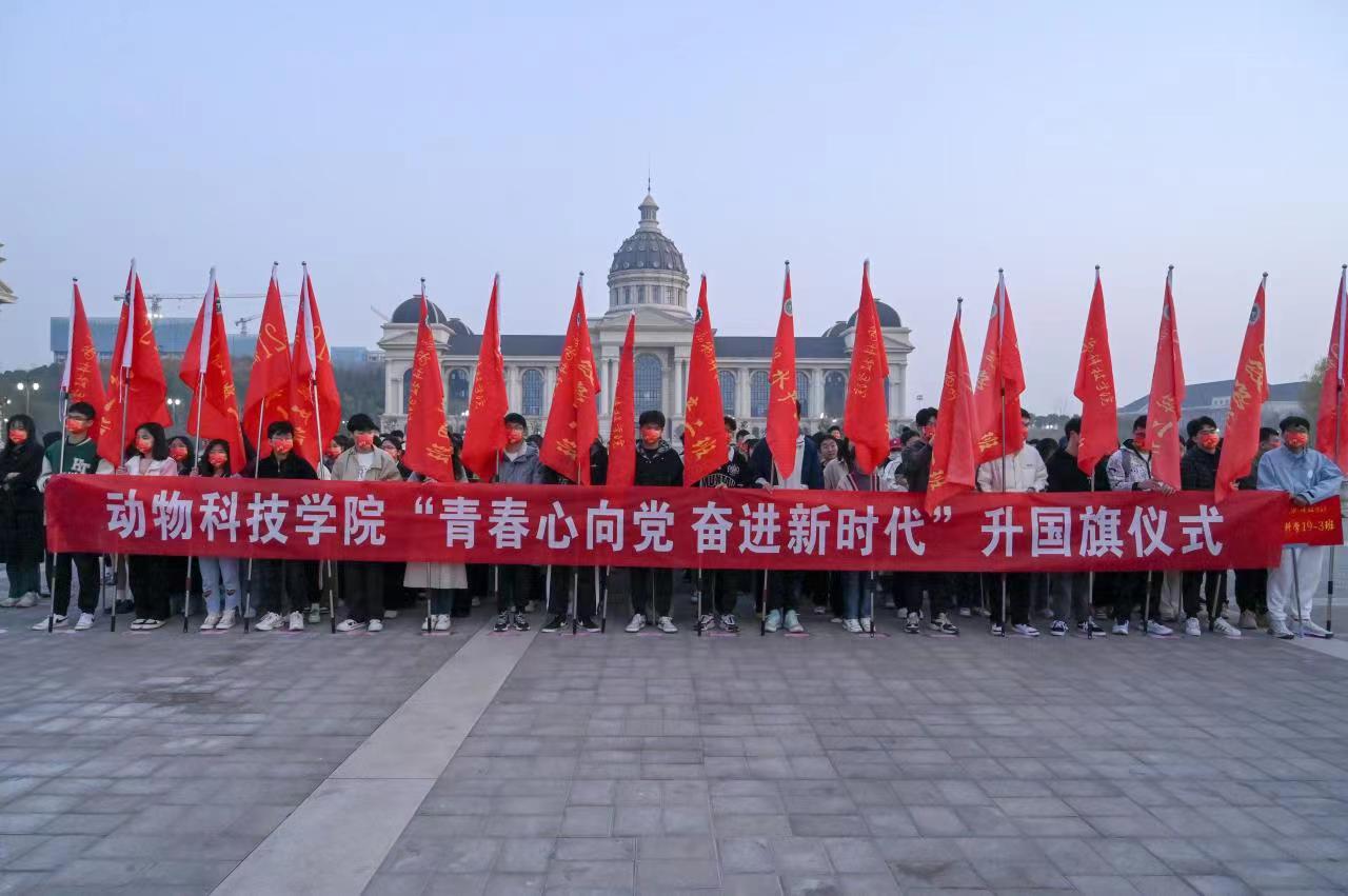 本网讯(通讯员 赵姝灿)阳春布德泽,万物生光辉。为持续深化“三品”主题教育,厚植爱国主义情怀,绅士漫画 于3月6日早7点在龙子湖校区举行“青春心向党 奋进新时代”升国旗仪式,表达动科师生对党和祖国的无限热爱和崇高敬意。仪式由副院长付彤主持。