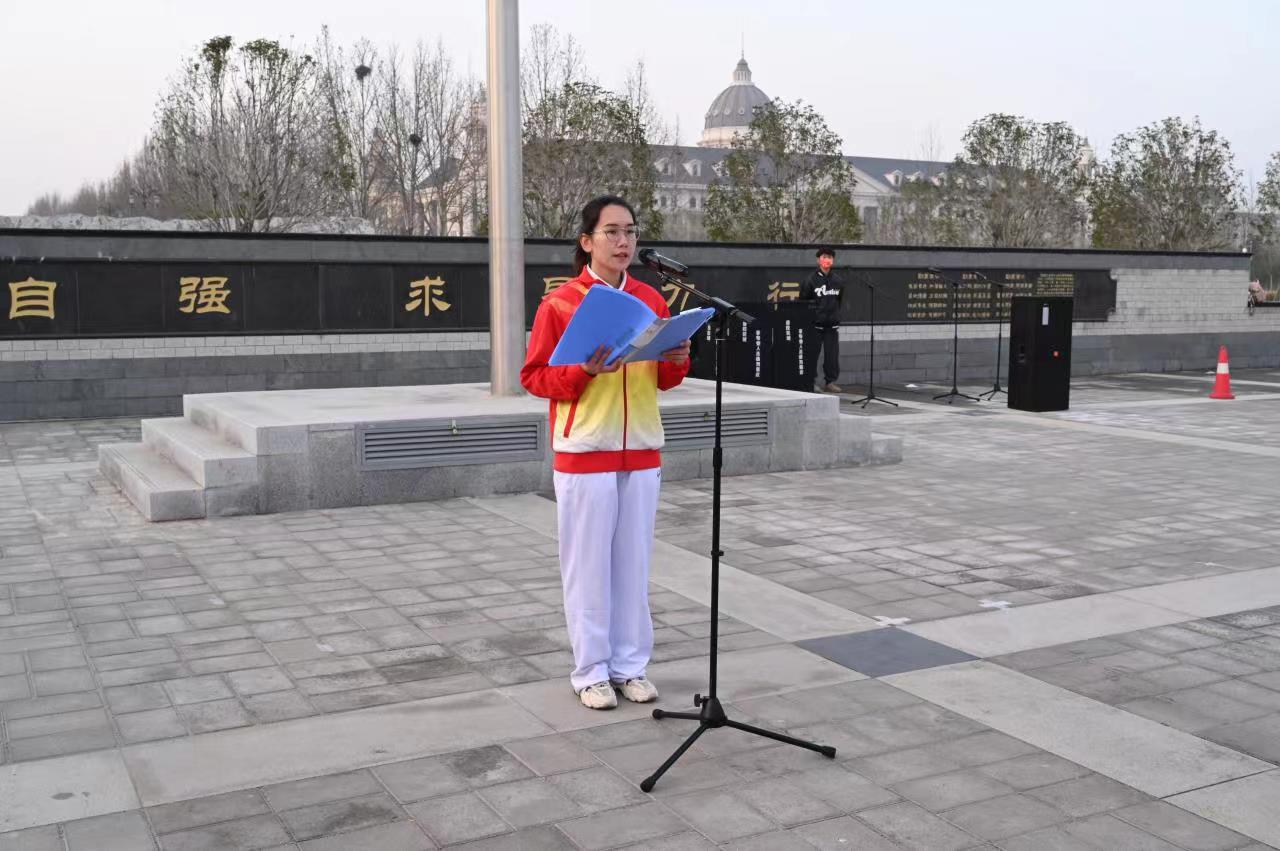 国旗护卫队踏着铿锵有力的步伐迈向升旗台,激昂的《义勇军进行曲》响起,全体师生心中激情澎湃,向国旗行注目礼,鲜艳的五星红旗迎风招展、冉冉升起。礼毕,由大学生党员标兵、已推免至中国农业大学硕士研究生的2019级本科生陈淑同学带来国旗下的演讲。她从“抓住机遇,勇于挑战,用青春绘就人生蓝图”、“脚踏实地,仰望星空,用实践擦亮青春底色”、“立德修身,诚以待人,用真心净化心灵圣土”三方面讲述自己大学期间的追梦历程,并号召大家在青春的赛道上奋力奔跑,成为引领时代的弄潮儿,共同谱写绚烂多彩的青春华章。接着,由35名入党积极分子在国旗下演唱歌曲《向上的光》,通过歌曲展现动科学子要以时代之光照亮奋进之路、以文化之光闪耀自信之美、以青春之光燃烧奋斗之志的决心。