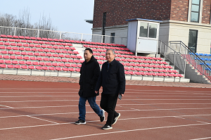 伴随着院长李明的一声号令,比赛正式开始。教职工们个个精神抖擞、兴致高昂,沿着跑道阔步向前。现场学生志愿者们细心准备了热水和纸巾,不时为老师们加油助威、气氛热烈。大家围绕操场步行十圈,一边呼吸着新鲜空气,一边与同行的人进行热烈交流,整个体育场欢声笑语,散发着昂扬向上的氛围。