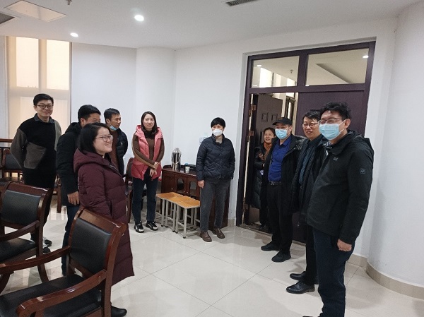 检查组与教工作进行交流