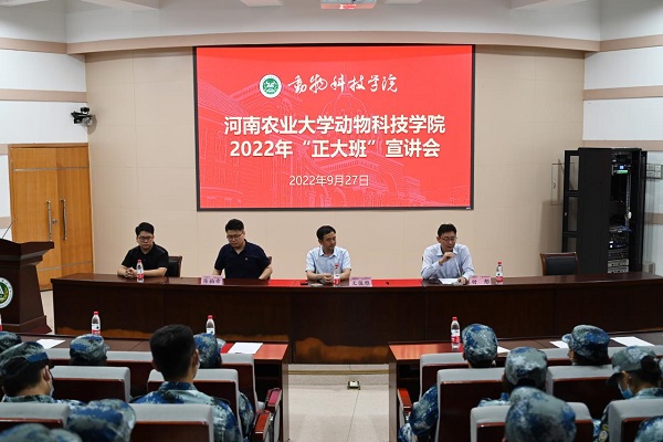 “正大班”宣讲会于文化路校区300人报告厅召开。河南区饲料养殖事业人事主管文俊雅、河南区招聘中心人事主管陈柏希、学院副院长付彤出席本次宣讲会。