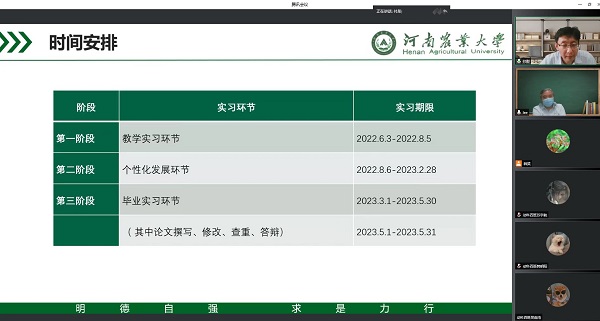 今年的实习工作因为疫情防控等特殊因素,在具体形式上有所变换,但是,学院对实习任务的要求依然是高标准的,请大家及时完成角色转换,高质量完成实习工作;三要端正态度,放平心态