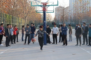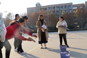 第一届教职工趣味运动会在龙子湖校区篮球场拉开帷幕,全体教职工踊跃参与。