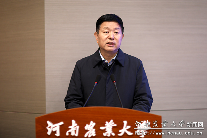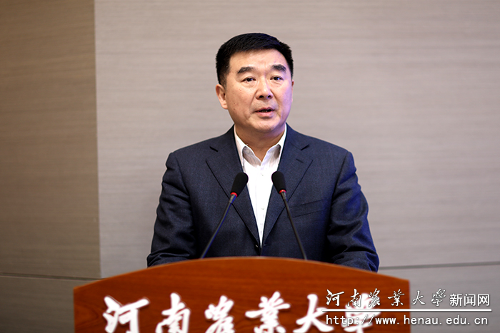 张改平在致辞中指出,研究院要按照国家新型研发机构的标准设立,按照投资主体多元、企业化管理、市场化运营,合法依规开展活动。他强调,当前学校正处于发展的重要战略机遇期,站在“两个一百年”的历史交汇点上,学校谋篇布局、蓄势发力,与牧原集团的携手合作正当其时。学校正聚焦农业科技社会化服务体系建设、农业科技成果转化、创新要素在基层集聚等目标,探索科技创新助力乡村振兴和农业现代化的新机制、新模式和新业态,研究院的建设恰逢其势。把研究院建成一个创新型的联合体,形成产教深度融合的新形态,一个科技创新的载体,围绕河南产业需求、围绕中国产业发展,成为创新的平台、集聚的平台、育人的平台、服务的平台和国际开放的平台。