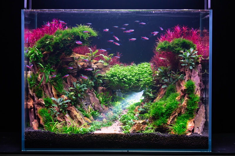 参赛选手依据前期设计方案,完成景观骨架搭建,以及各类水草的精心布局与栽植,将水族箱逐步构筑成富有生机的水下景观;第二赛段,绅士漫画