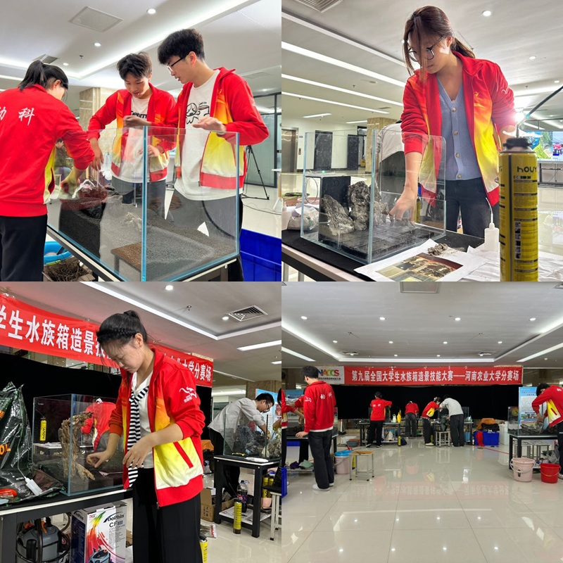 师生参加第九届全国大学生水族箱造景技能大赛决赛第一赛段比赛