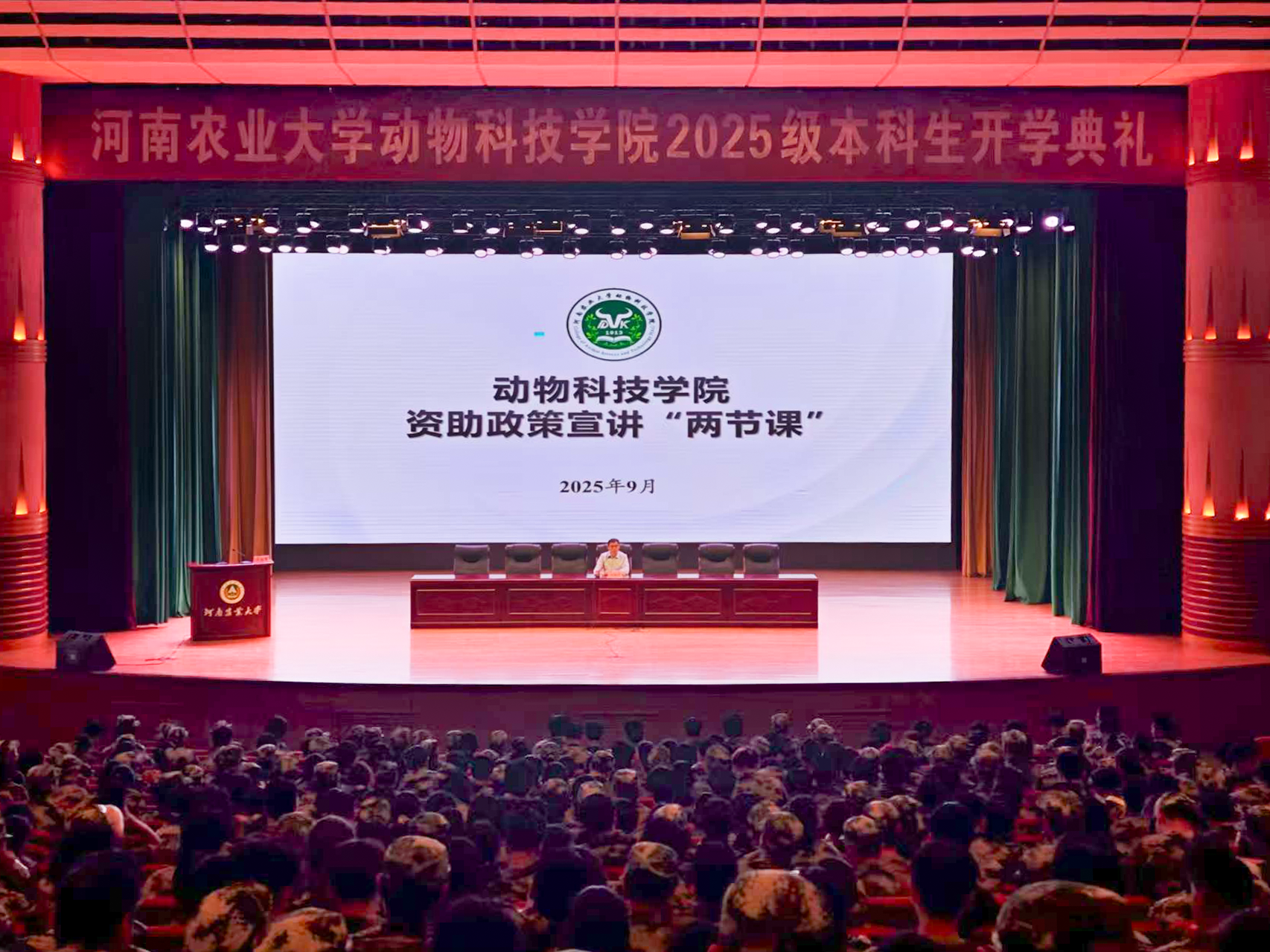 于文化路校区大礼堂举行2025年秋季资助政策宣讲“两节课”活动。辅导员杨超然主讲,2025级全体新生参加活动。
