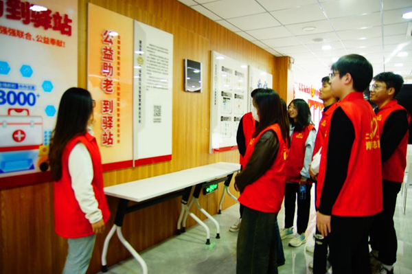 在二七区青年志愿者协会的带领下,此次活动以参观、座谈会相结合的形式开展。活动开始在支部负责人汪琴的引领下本科生第三党支部的党员志愿者们一起熟悉爱心驿站的志愿故事,感受“奉献、友爱、互助、进步”的志愿者精神。