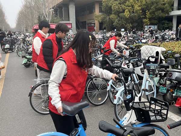 志愿者规范摆放自行车