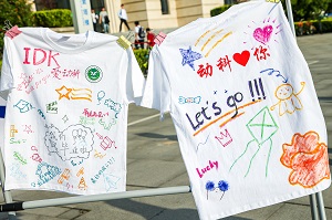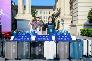 现场分为主舞台区、文化区、食品区、游戏区等4个活动板块,主舞台区上,毕业生身着盛装踏上红毯、熠熠生辉,也寓意顺着红毯走向未来之门、奋斗之门,进入幸福之门;文艺节目通过“晨光夕忆、灼灼韶华、鹏程万里”三个篇章徐徐开启,满溢学弟学妹的无尽祝福和毕业生的绵绵不舍;文化区里,大幅留言墙写满学子的“独家记忆”,“衣衣不舍,情系动科”文化衫创意制作活动和“写尽千山,落笔是你”明信片寄语活动,通过涂鸦定制文化衫,制作专属明信片,留下动科四年最美好的青春回忆;游戏互动区,豪华行李箱、刻有每位同学姓名的定制徽章、定制U盘、马克杯等专属文创大礼包让毕业生满载回忆自信出发;食品区酸奶饮料零食大荟萃,纵享毕业好“食”光……“这也太宠了,太棒了,好玩又好暖”毕业生张新雨开心地表示。