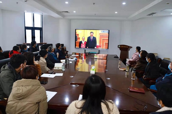 在第一实验楼330会议室,全体领导班子、教职工集中收看直播,大家纷纷表示这是亘古未有的壮举,也是人类减贫史上的奇迹,纷纷表示习近平总书记的讲话振奋人心,备受鼓舞,纷纷表示脱贫不是终点,而是新生活、新奋斗的起点,在实现乡村振兴的新征程上,作为高校教师,要鼓足干劲,发挥优势做精科研、育好人才,在脱贫的基础上,努力绘就乡村振兴的壮美画卷,朝着共同富裕的目标稳步前行。