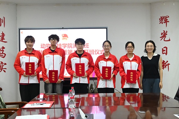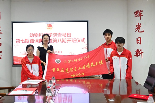 于龙子湖校区第一实验楼北330举行青马班第七期结业典礼暨第八期开班仪式,院组织员兼团委书记韩笑、第七期青马班代表及第八期青马班全体同学参会,会议由王继轩主持。