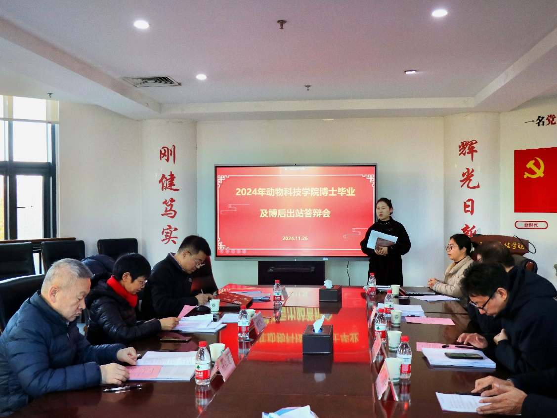在第一实验楼北330会议室举行了2024年下半年博士研究生毕业及博士后出站答辩会。答辩委员会主席由中国农业科学院北京畜牧兽医研究所顾宪红研究员担任,中国农业大学杨红建教授,中国农业科学院北京畜牧兽医研究所赵学明教授,河南省农业科学院畜牧兽医研究所李绍钰研究员,河南工业大学王金荣教授,河南牧业经济学院邓红雨教授,绅士漫画