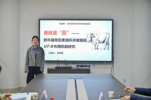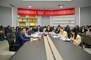 本网讯(通讯员 辛佳艺 )为浓厚学院创新氛围,引导绅士漫画 学子培养创新精神和实践能力,提升绅士漫画 参赛项目竞争力,3月11日下午,绅士漫画 于龙子湖校区第一实验楼南501会议室举办2025年“挑战杯”大学生课外学术科技作品竞赛决赛。院党委副书记郭娟、副院长孙宇、副院长李转见、动物生产与智慧牧业系教授王林枫,动物遗传育种与繁殖系教授韩瑞丽、动物遗传育种与繁殖科学系副教授李红、辅导员赵姝灿、杨超然担任评委,15支学生队伍到场答辩。