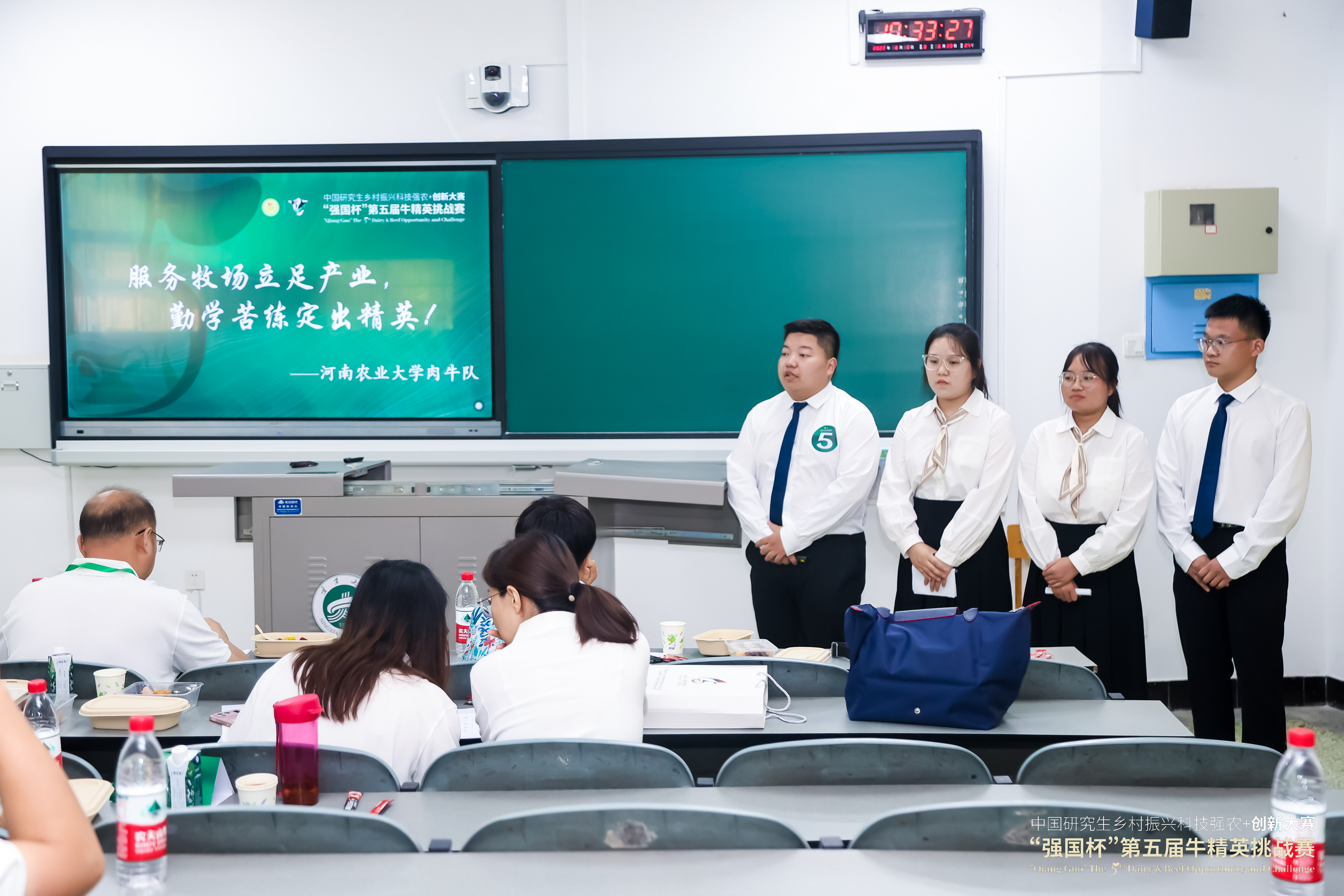 选拔赛。经过激烈的角逐,最终选出8名学生参与决赛,分别组建了奶牛及肉牛组各一支,奶牛组由博士研究生张梦璐带队,硕士研究生张雨、王振宇和刘镇滔参加,肉牛组由博士研究生虎业浩带队,硕士研究生王瑶、杜兴杰和王婷婷参加。