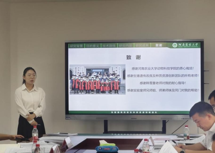 副院长李平华教授、华中农业大学徐学文教授、华南农业大学杨杰教授,生猪团队李新建教授、李春丽教授、乔瑞敏教授、韩雪蕾教授、王克君教授、李秀领副教授和杨峰副教授担任答辩委员会委员。答辩委员会秘书由余彤博士和王腾飞博士组成。