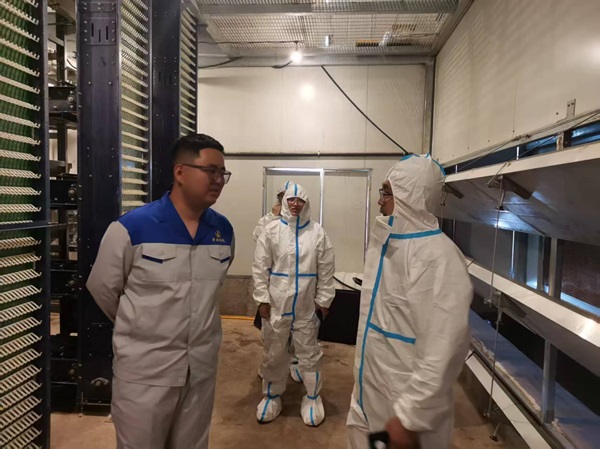 随后,刘凯介绍了企业蛋鸡存栏、夏季产蛋率及饲料成本等情况,重点探讨蛋鸡热应激反应、饲料配方适配性及产蛋高峰期采食量下降等问题。公司技术总监王军利围绕夏季蛋鸡采食量提升、饲料能量调整及光照与通风管理等交流,指出热应激引发的代谢紊乱是核心难题,强调精准调控环境与优化营养的重要性。田亚东教授针对性建议从环境与营养协同发力,控制鸡舍温度、调整饲喂时间,优化饲料配方。进入饲养舍查看时,他强调夏季疾病预防需聚焦肠道疾病防控与球虫病防治,遵循科学防疫程序,精准注射疫苗、定期消毒、做好粪便清理、强化外围生物安全及管控人员进出。