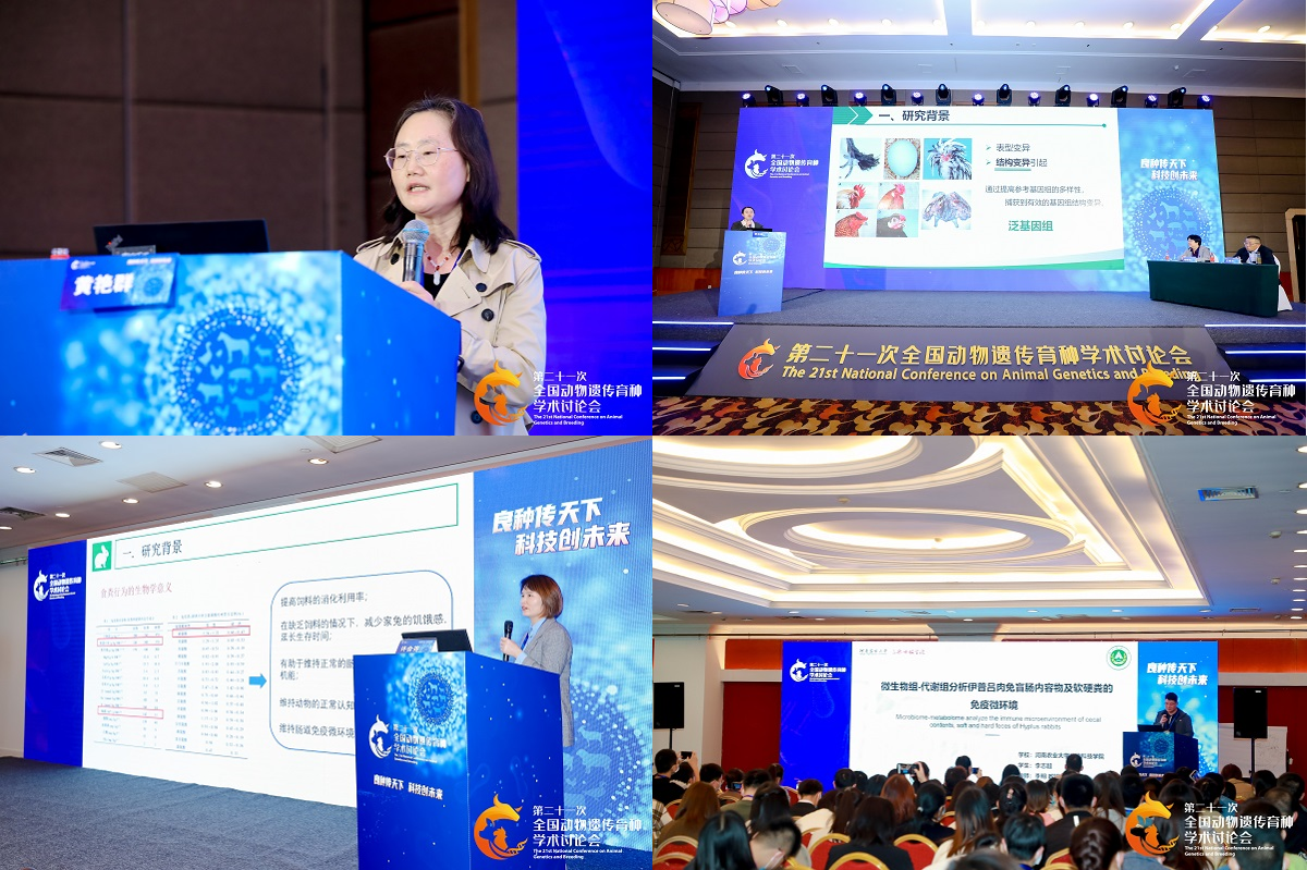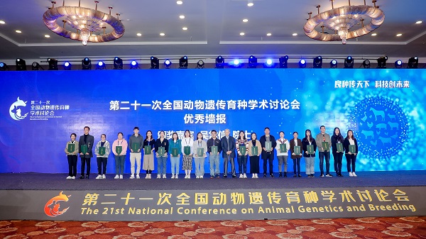 本网讯(通讯员 张彦华)10月13-17日,第二十一次全国动物遗传育种学术讨论会在北京举办,绅士漫画 组织50余位教师和研究生参会学习。其中黄艳群教授、李文婷副教授、许会芬老师和李志超博士研究生分别做专题报告分享科研成果;李文婷副教授的论文《基于泛基因组解析鸡生长性状主效基因IGF2BP1原因突变》荣获“优秀论文奖”;2021级博士研究生李志超的论文《微生物组-代谢组分析伊普吕肉兔盲肠内容物及软硬粪的免疫微环境》荣获“青年学者旅行奖”;2021届硕士毕业生唐贺贺的论文《鸡血清碱性磷酸酶(ALP)标签SNP的鉴定》荣获“优秀墙报奖”。