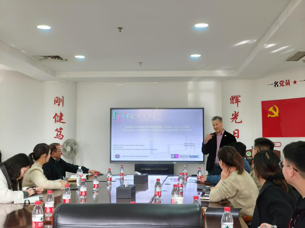 报告中,Dr. Mike McGrew从禽类研究设施的功能架构、家禽冷冻保存与基因改造的技术瓶颈、胚胎生殖细胞在基因组编辑中的应用以及鸡生殖细胞的分离培养等方面,系统阐述了家禽基因编辑和生殖细胞研究的最新进展,报告结束后,Dr. Mike McGrew 与在场参加会议的专家学者和研究生进行了学术的深入交流和讨论,现场氛围高涨,极大地调动了参会学者的学术研究积极性,并有力地促进了对学科前沿问题的深入思考。