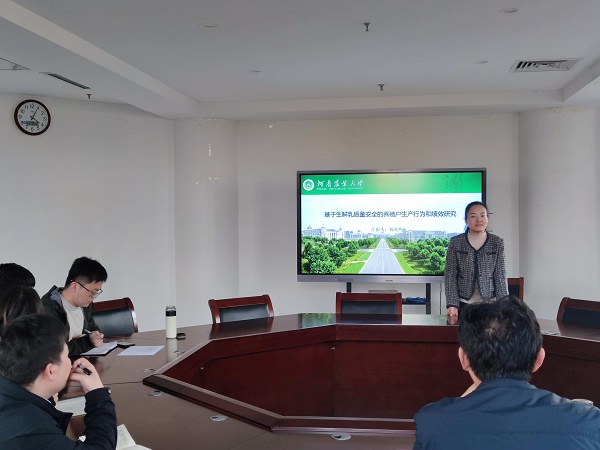 杨欣然以《基于生鲜乳质量安全的养殖户生产行为和绩效研究》为主题,以内蒙古为例,先后介绍了奶业生产结构及其变化趋势、奶业生产结构对养殖户的质量安全生产行为和生产绩效的影响以及养殖户采纳生鲜乳标准生产措施影响因素分析,表明奶业生产结构从家庭散养模式逐渐转变为奶牛养殖小区,并成为养殖主体,规模化家庭牧场和养殖企业也逐渐兴起;养殖户平均采纳了约50%的标准生产措施,在奶牛健康、养殖环境和信息记录方面的采纳率低;随着养殖规模的扩大以及生产方式的改进,生鲜乳质量安全水平不断提高,养殖户的净收益呈增加趋势。最后杨欣然提出了推进奶牛养殖规模和标准化建设、执行“优质优价”的定价原则、成本共担机制等政策启示,为奶业发展提供了宝贵建议。
