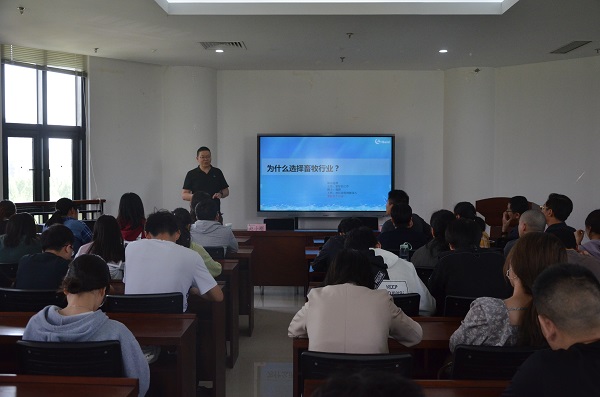 赵小刚以“在蜕变中成长”为题,介绍了自己在海大集团的成长经历,围绕“为什么选择畜牧行业”的问题,他阐述了自己如何从被动选择到深入了解,再到热爱这个工作,无论是学习还是工作上的问题,他强调都要从整体的面上去看,从整个面上出发而不能只看那一个点。“海大很大,但其实也很小”,赵小刚这么说,海大集团是全产业链发展的公司,子公司多达320家,遍布全国乃至全球,无论是从饲料销量、利润或是市值来看,海大的确很“大”;随后赵小刚列出了未来海大集团2025年的目标,与此相比,海大现在确实还“小”;报告最后,赵小刚向同学们介绍了当前饲料产业概况以及生猪价格行情变化趋势,并强调了当前非洲猪瘟环境下,养殖业公司管理应该如何实行防控模式。