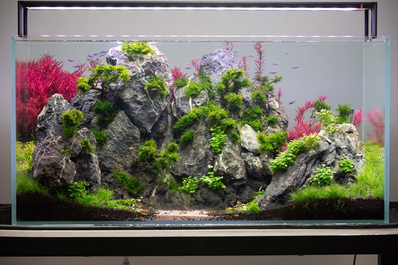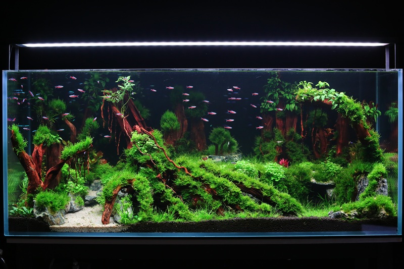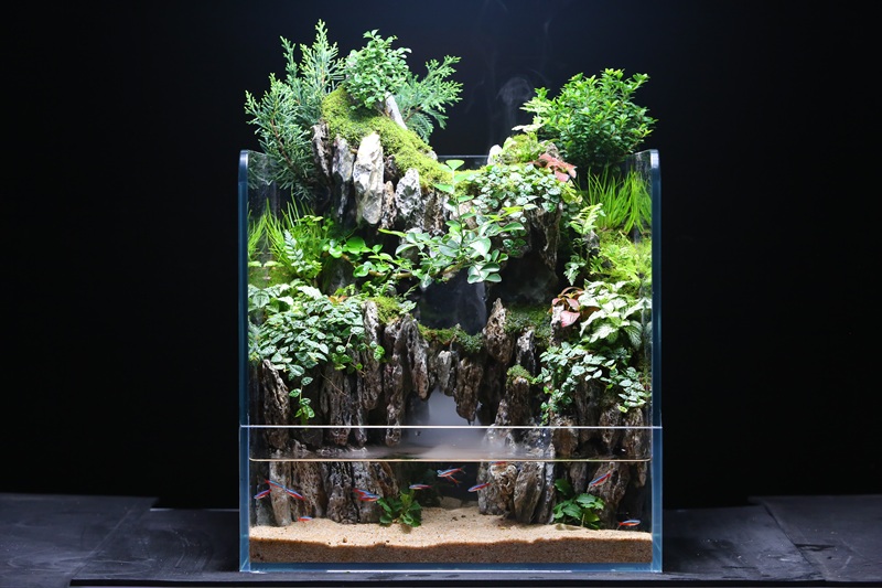 参赛选手依据前期设计方案,完成景观骨架搭建,以及各类水草的精心布局与栽植,将水族箱逐步构筑成富有生机的水下景观;第二赛段,绅士漫画